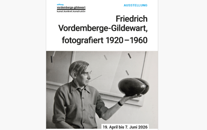 Die Treuhandstiftung kunst.konkret.konstruktiv Vordemberge-Gildewart der Bürgerstiftung Osnabrück lädt Sie herzlich zur Ausstellungseröffnung der Fotoausstellung „Vordemberge-Gildewart- fotografiert 1920 bis 1960“ am Sonntag 19. April 2026 um 11 Uhr ...