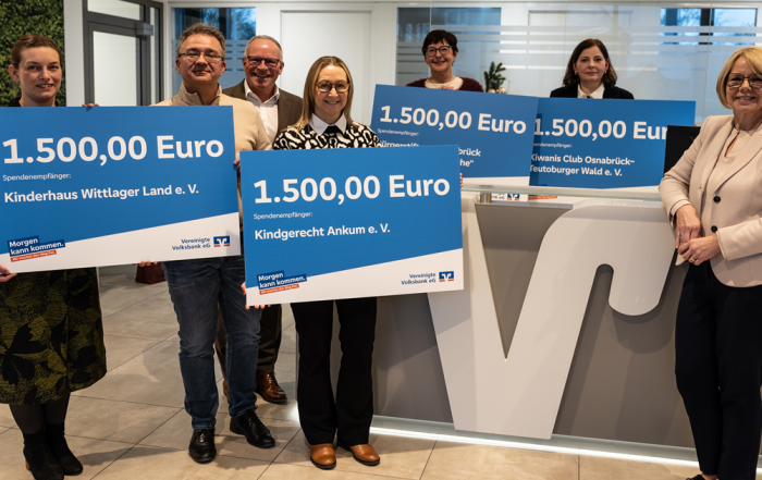 1.500 Euro an das Projekt Kinderwünsche – Spendenübergabe bei der Vereinigten Volksbank